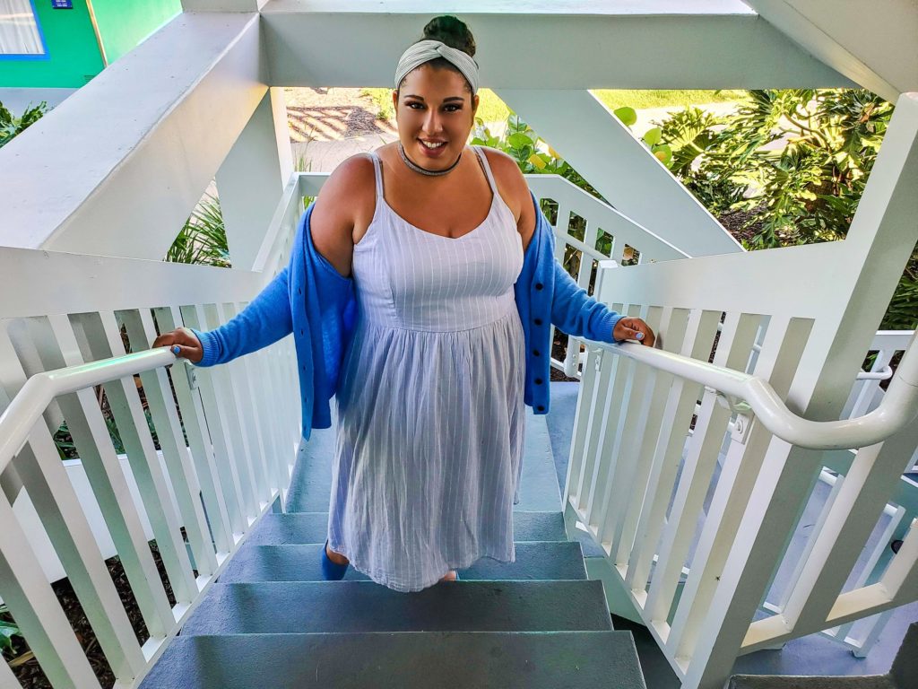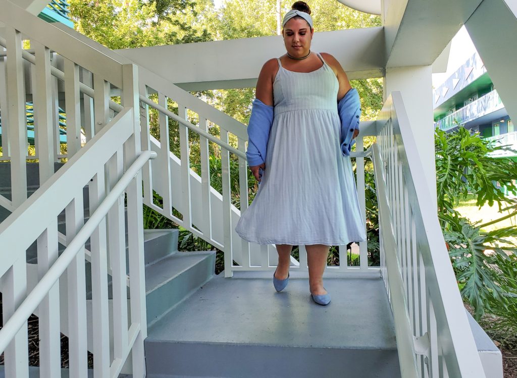 I wanted to plan a dressed up and dressed down version of this DisneyBound and I planned to wear both during my trip, but as soon as I walked out of my room at All Star Sports with the flats and sweater on it was clear that those pieces would NOT be coming to the parks with me! I originally planned to throw them in our backpack and put them on and off for photos, but the Florida heat plus flats with my high arches was 100% not worth it, and I think that’s okay!
