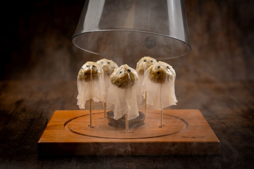 - Cursed Mummy Sausages: Mini smoked sausages wrapped in puff pastry and served with pomegranate-mustard sauce (New)