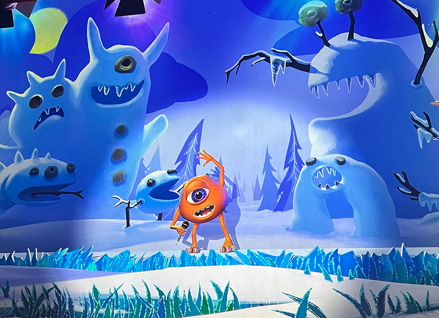 Marty Wazowski, a smaller, orange version of Mike and Mike’s nephew, often interacts with younger guests in the audience. Got a joke you’d like to share? As you wait to enter the theater, you’ll get special instructions on how to text in your favorite! Who knows, you might be famous…in Monstropolis anyway.
