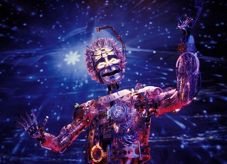 In 1994, the Timekeeper attraction opened, featuring the impressive Audio-Animatronic figures of the Timekeeper and Nine-Eye. The Timekeeper attraction took Guests on a thrilling journey through time. The show featured the talents of Robin Williams and Rhea Perlman and “cameo” appearances by Jules Verne and H.G. Wells. After a 12-year run, the Timekeeper closed its doors to make way for a new type of attraction.