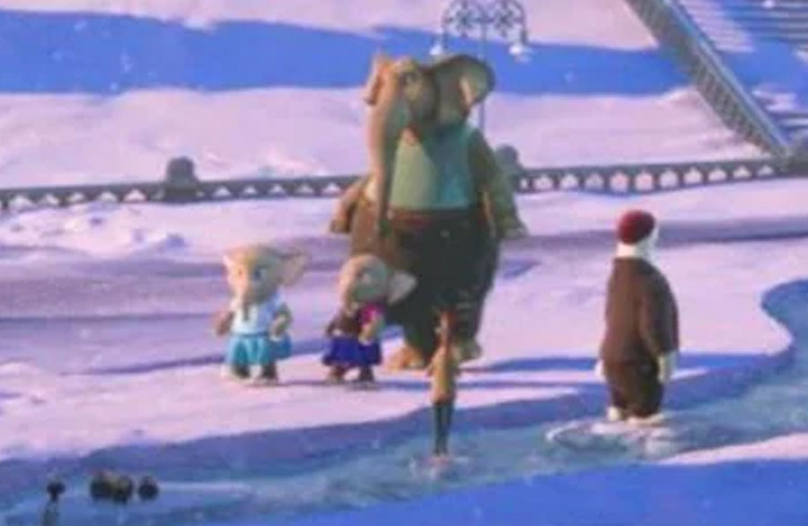 In Zootopia, a little elephant girl wearing an outfit resembling Anna’s winter outfit can be seen wandering around in Tundratown. Next to her is another elephant girl wearing an outfit styled after Elsa’s ‘Snow Queen’ gown!
