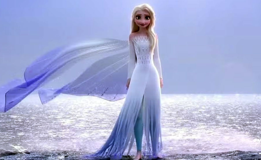 Throughout the early part of Frozen, Elsa’s clothes become noticeably darker, duller, and more restrained as she gradually becomes an adult. Fortunately, after singing “Let It Go,” her clothing gets noticeably brighter.