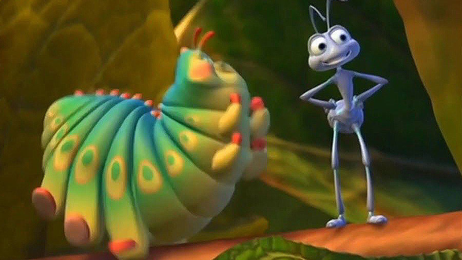 A closeup of Flik and Heimlich from A Bug’s Life can be seen in one of the outtakes, returning the favor after Woody made a cameo in one of the outtakes for A Bug’s Life. Humorously, the same scene can be found in the actual movie, as Buzz and the gang cut through some branches on the way to Al’s Toy Barn. If you look closely, you can see the tiny figures of Flik and Heimlich just before Buzz crashes through.