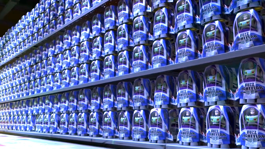 In the scene where the toys travel through the Buzz Lightyear aisle, Tour Guide Barbie says, “Back in 1995, shortsighted retailers did not order enough dolls to meet demand.” This quote is actually true. When the original Toy Story came out in 1995, store owners underestimated the popularity of Buzz Lightyear and only ordered 60,000 figures, a far cry from the eventual demand of 9 million.